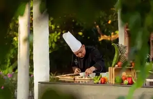 Gather around rustic wooden tables beneath the tropical canopy, feel the gentle breeze, and savour each bite as part of an eco-conscious “Farm to Table to Soul” journey that nourishes body, mind, and spirit.
